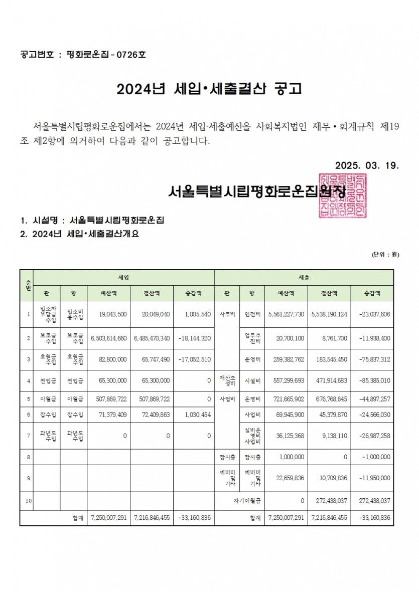 2024년 세입세출 결산서 공고 페이지 정보 작성자 한동주 작성일 25-03-19 13:28 조회 12,505회 댓글 0건 첨부파일 파일 홈페이지2024 세입.세출견결산공고.pdf (48.3K) 138회 다운로드 DATE : 2025-03-19 13:28:29 본문 2024년 세입세출결산서를 다음과 같이 공고합니다. 이전글 다음글 목록 답변