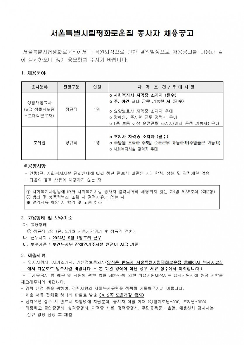 2024년 제8차 종사자채용 모집공고 페이지 정보 작성자 한동주 작성일 24-07-30 18:02 조회 18,374회 댓글 0건 첨부파일 파일 시립평화로운집 입사지원서이력서,자기소개서및개인정보동의서.hwp (22.5K) 178회 다운로드 DATE : 2024-07-30 18:02:25 본문 이전글 다음글 목록 답변