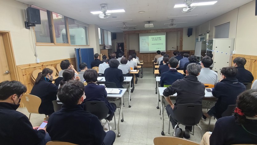 공지 | 장애인 인식 개선 교육 페이지 정보 작성자 장설궁 작성일 23-03-17 15:47 조회 7,781회 댓글 0건 본문 장애감수성을 키우고 장애공감문화 조성과 장애유무를 떠나 "우리는 모두 사람이니까" 라는 관점을 통해 포용사회 실현에 기여하기 위한 장애인 인식개선교육을 3월 15일 실시하였습니다. 열강을 해주신 조효식, 장양숙 강사님과 경청해주신 선생님들 감사합니다. 이전글 다음글 목록