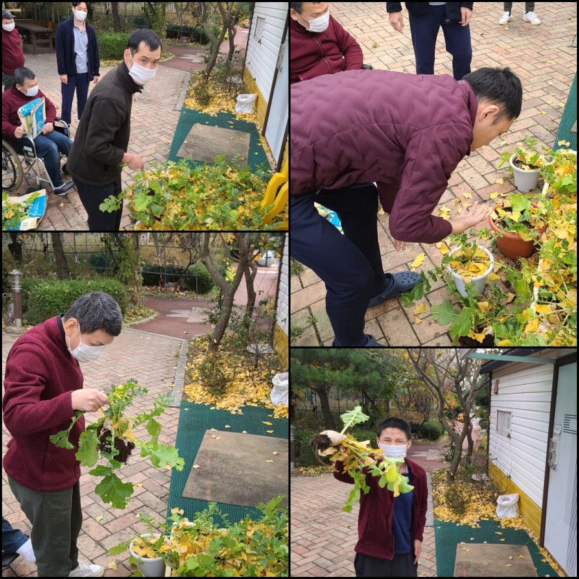 거주인 이야기 | 11월 원예교실 2주차! 페이지 정보 작성자 박성호 작성일 21-11-26 10:35 조회 11,376회 댓글 0건 본문 11월 13일 원예교실자향정 개인 화분에 파종한 무를 뽑아 조리실에 전달하는 시간을 가졌습니다. 화분이 작아 무가 작았지만 직접 키운 무를 보며 흐뭇해하는 모습을 보이셨습니다~ 이전글 다음글 목록