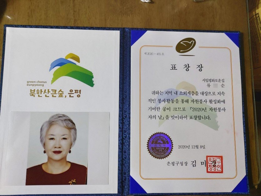 후원자·봉사자 이야기 | 우수자원봉사자 류0순 봉사자님 은평구청장 표창장 축하드립니다! 페이지 정보 작성자 박성호 작성일 20-12-14 18:11 조회 13,191회 댓글 0건 본문 - 은평구청장 표창장 우수자원 봉사자 류O순2011년 부터 시립평화로운집을 위해 아낌없이 봉사활동을 해주신 류O순 봉사자님 께서 2020년 은평구 우수자원봉사자 표창을 수여 받았습니다!! 진심으로 축하 드립니다^^ 앞으로도 평화로운집을 위해 많은 활동 부탁드리겠습니다. 감사합니다. 이전글 다음글 목록