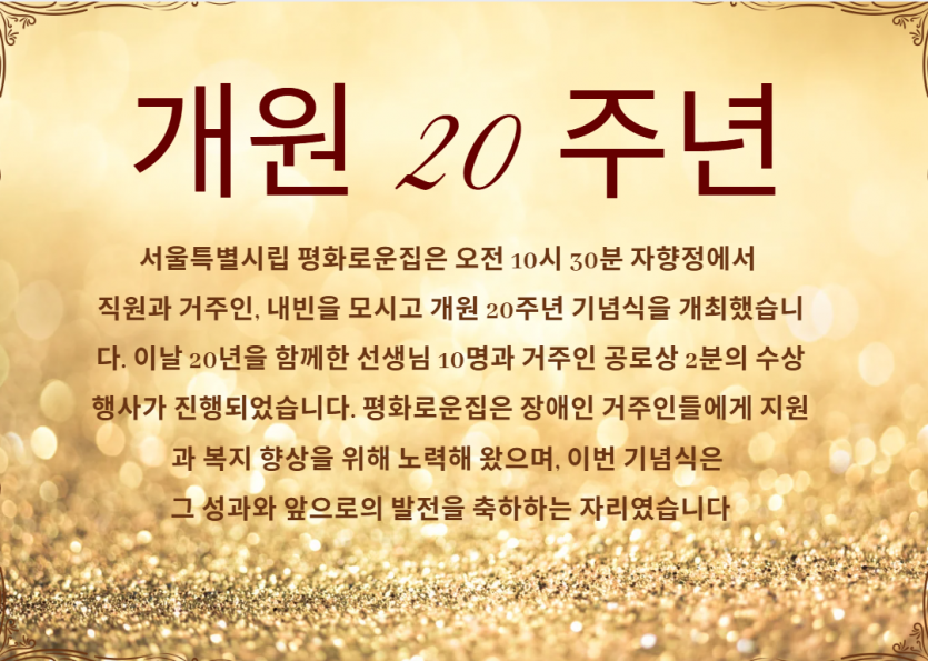 저희 시립평화로운집이 개원 20주년을 맞이하여