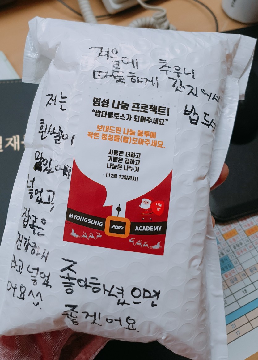 후원자·봉사자 이야기 | 명성체육관 후원물품 전달식 페이지 정보 작성자 박상은 작성일 19-12-30 17:27 조회 13,313회 댓글 0건 본문 매년 연말이면 우리 평화로운집에 따뜻한 나눔을 전하러 오시는 곳이 있습니다.바로 얼마 전 우수자원봉사단체상을 수상한 명성체육관 입니다!명성체육관에 다니는 아이들이 관장님의 마음을 따라나눔을 실천하고자 쌀을 모아주었습니다.아이들이 몇 달동안 함께 모아준 쌀 덕분에평화로운집 가족들은 올 겨울 내내 든든히 지낼 수 있을 것 같습니다^^천사같은 아이들의 손길로 모아진 값진 쌀!진심으로 고마움을 전합니다~♡ 이전글 다음글 목록