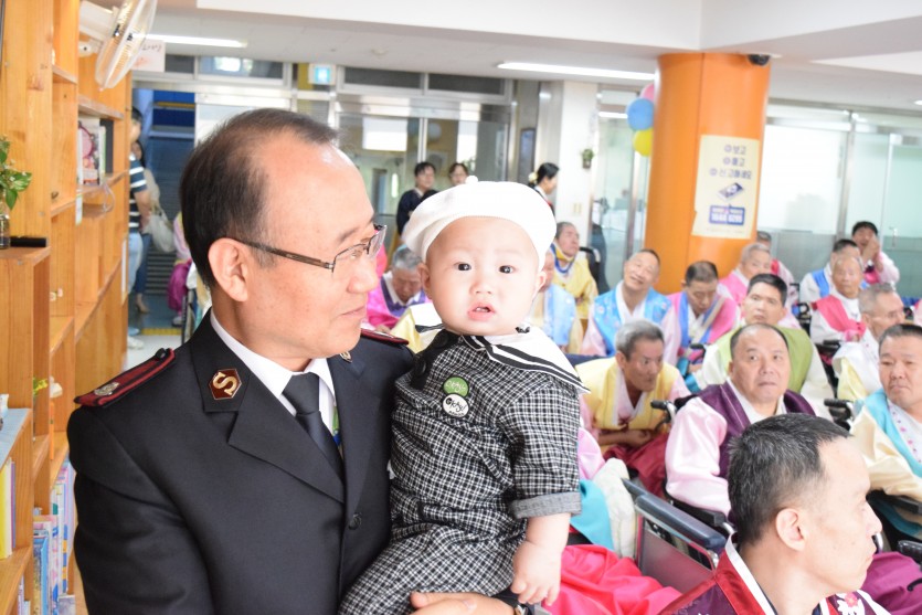 아직 돌이 채 되지 않은 손녀와 함께 추석인사를 해주셨습니다.