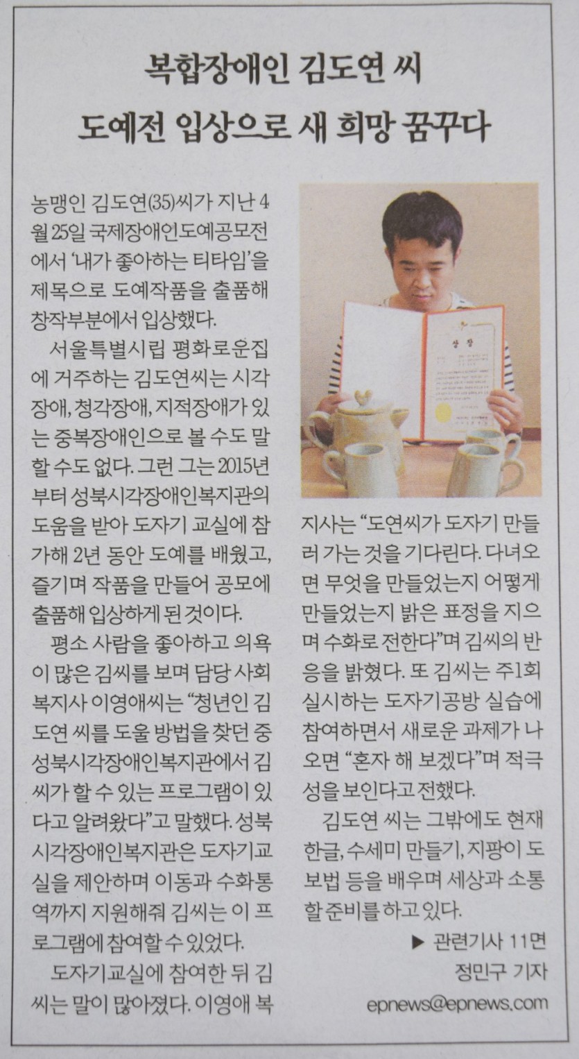 은평시민신문-"중복장애 딛고 손끝으로 세상과 소통하는 김도연씨"