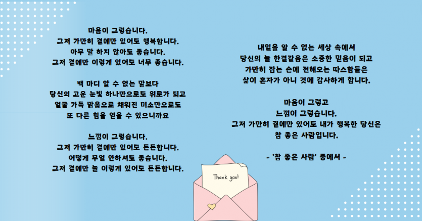 거주인 이야기 | 0913 2차 치과 진료 페이지 정보 작성자 장설궁 작성일 24-09-22 16:55 조회 7,352회 댓글 0건 본문 평화로운집 가족들의 오복 중 하나인 치아 건강에 힘써 주시는 의료진과 평화로운집 선생님들께 감사의 마음을 전합니다.감사합니다. 이전글 다음글 목록