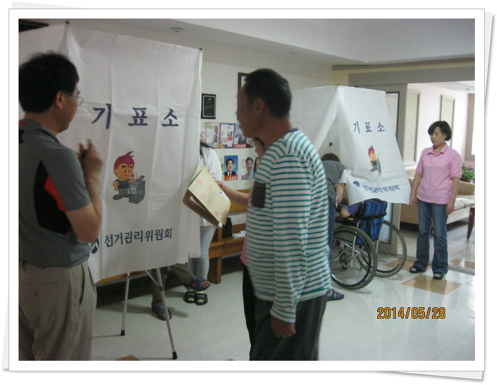 제6회 전국동시지방선거 거소투표실시 페이지 정보 작성자 이선희 작성일 14-06-02 15:59 조회 9,490회 댓글 0건 첨부파일 본문 본원 생활가족의 참정권 보장사업으로 2014년 6월4일 실시하는 제 6회 전국동시지방선거를 위한 거소투표를 진행되었고, 선거관리위원회에서 3명이 나오셔서 거소투표소에서 원활하게 투표가 진행되도록 도와주셨습니다. 자가 이동이 가능한 소수 인원은 6월4일 지역사회투표소에서 직접 투표할 예정입니다. 이전글 다음글 목록