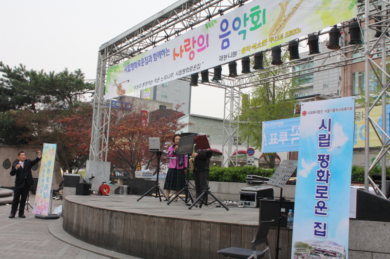 평화로운집을 알리기 위해 연신내역 물빛공원으로 "사랑의 음악회"를 열었습니다.