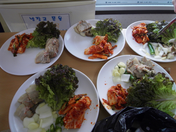 참 행복한 방 사랑채 외식: 한달동안 열심히 운동 및 식이 조절로 비만관리자는 체중이 2kg씩 체중이 조절되었으나 평상시 음식에 대한 욕구를 충족하고 계획되어 사랑채에서 음악을 들으면서 "누가 더 많이 먹어볼까 " 살펴보면서 흰쌀밥에 수육을 상추에 싸서 먹으면서 한달동안의 노고에 보상을 받은 기분이라고 할까 ~~