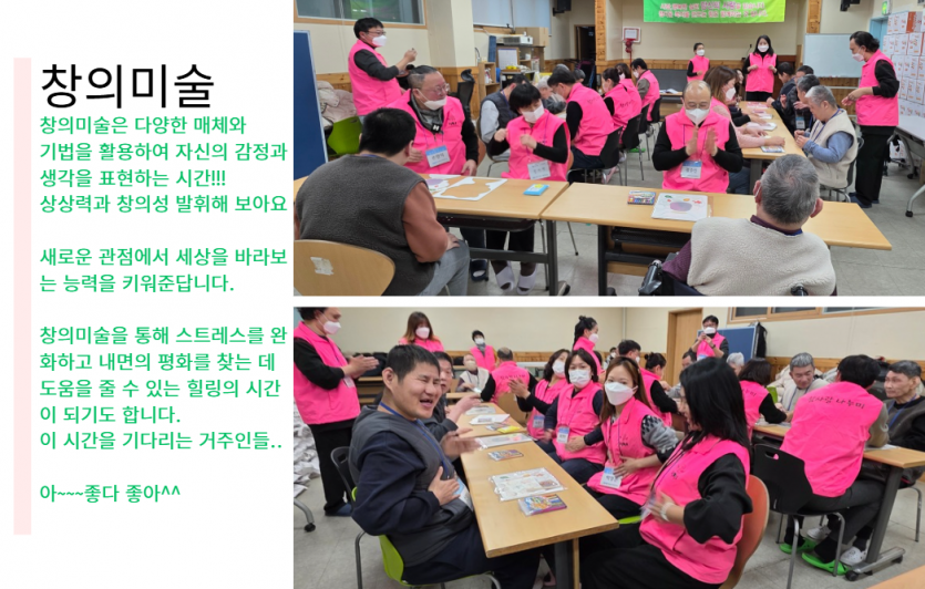 후원자·봉사자 이야기 | KCU참사랑나누미 창의미술활동 페이지 정보 작성자 장설궁 작성일 26-01-07 13:35 조회 1,315회 댓글 0건 본문 함께교육해주신 참사랑나누미 KCU 에게감사의 마음을 전합니다.감사합니다. 다음달에 뵈어요~~ 이전글 다음글 검색 목록