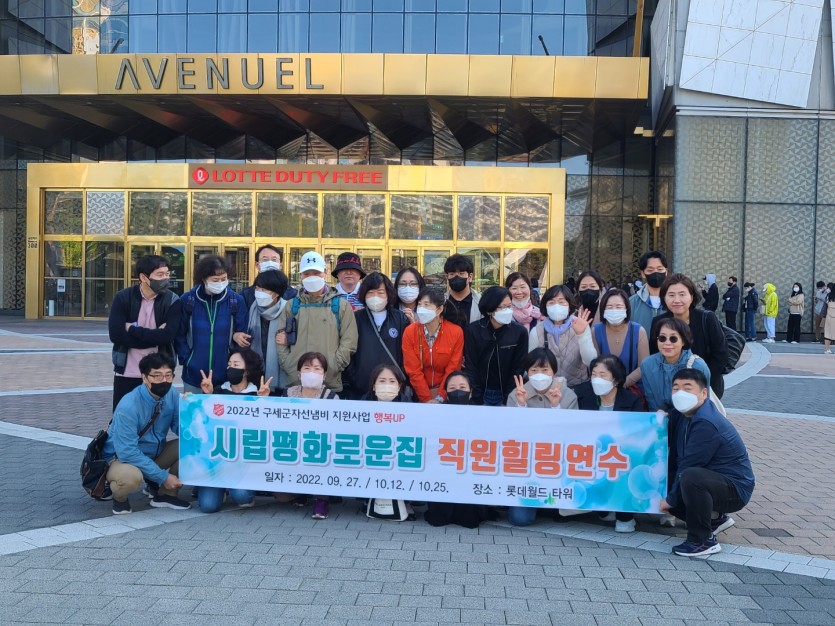 2022년 직원연수 페이지 정보 작성자 장설궁 작성일 22-10-13 16:12 조회 11,645회 댓글 0건 첨부파일 파일 2차직원연수0.5.gif (11.3M) 125회 다운로드 DATE : 2022-10-13 16:39:03 본문 2022년 9월 27일 원장님,10월 12일 국장님, 10월25일 직원과 함께한 직원교육...저희평화로운집 직원93분들이 약 30여분씩 3차에 걸쳐 직원연수가 있었습니다. 2022년 기준 대한민국 최고층 건물이자 세계에서 5번째로 높은 건물인 서울스카이를 다녀왔습니다. 중식후 영화관람과 롯데어드벤처투어가 있었구요~~갑자기 쌀쌀해진 날씨에 모든 직원분들 모~두 참석해 주셔서 감사합니다~~ 이전글 다음글 목록