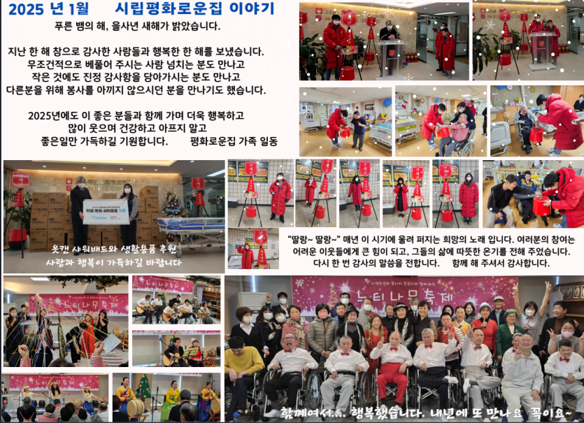 2025년 새해가 밝았습니다. 1월 후원 감사편지 페이지 정보 작성자 장설궁 작성일 25-01-02 11:36 조회 5,430회 댓글 0건 본문 아쉬워한다고 해서 돌아올 수 있는 시간이라면 100번이고 1000번이고 뒤를 돌아보겠지만.2024년의 아쉬움, 슬픔, 고통 모두 보내시고보낸 그 자리에 설렘과 기쁨, 행복만 흘러 들어오길2025년엔 많이 웃고 행복했으면 좋겠습니다. 이전글 다음글 목록