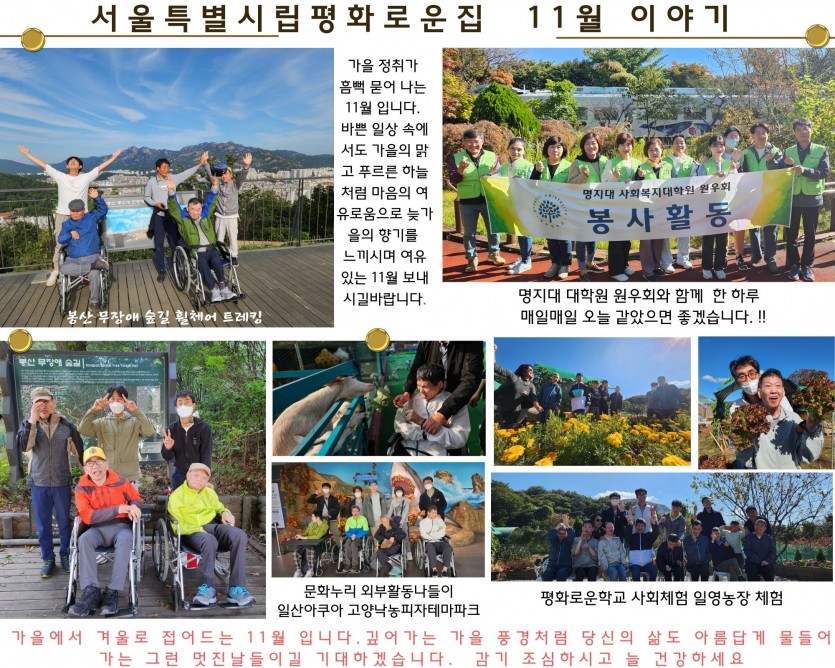 2023년 11월 후원 감사 편지 페이지 정보 작성자 장설궁 작성일 23-10-30 16:49 조회 7,671회 댓글 0건 본문 낙엽이 수북이 쌓인 느티나무길을 걸으며 가을이 얘기하는 소리를 애써 들어보려 합니다 가을이 전해준 아름다운 기억을 간직하며 언제나 즐겁고 좋은 일들만 가득한 11월 되시길 바라며 감사 인사 올려봅니다 이전글 다음글 목록