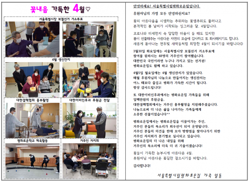 2021년 4월 후원자 감사편지 페이지 정보 작성자 박상은 작성일 21-04-07 09:40 조회 14,322회 댓글 0건 본문 2021년 4월, 활짝 핀 꽃들의 아름다움처럼 빛나는 후원자님의 나눔에 감사드립니다.늘 나눔으로 함께해주시는 후원자님께감사의 편지를 올립니다. 이전글 다음글 목록