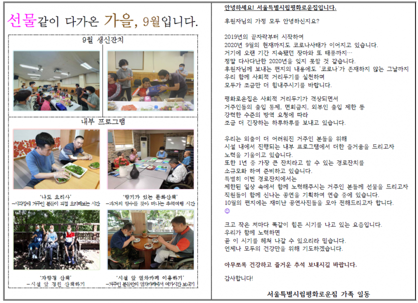 2020년 9월 후원자 감사편지 페이지 정보 작성자 박상은 작성일 20-09-11 15:57 조회 14,760회 댓글 0건 본문 2020년 9월, 아름다운 가을에 늘 나눔으로 함께해주시는 후원자님께감사의 편지를 올립니다. 이전글 다음글 목록
