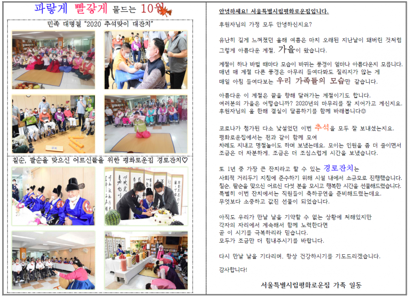 2020년 10월 후원자 감사편지 페이지 정보 작성자 박상은 작성일 20-10-16 14:54 조회 14,723회 댓글 0건 본문 늘 나눔으로 함께해주시는 후원자님께감사의 편지를 올립니다. 이전글 다음글 목록