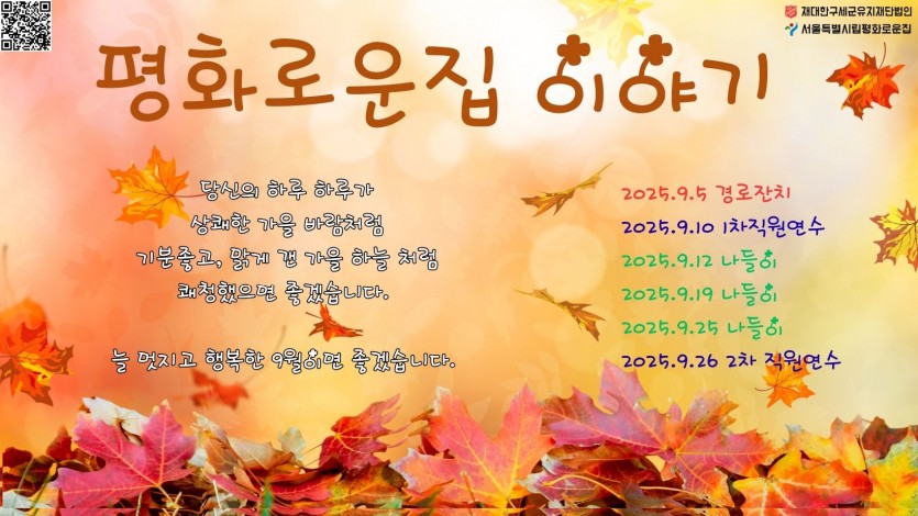 2025년 시립평화로운집 9월 후원감사편지 페이지 정보 작성자 장설궁 작성일 25-08-28 16:38 조회 2,409회 댓글 0건 본문 신선한 바람이 마음까지 맑게 해주는 9월입니다. 풍요로운계절행복과 여유가 가득한 한 달 되시길 바랍니다.9월 바람결에 행복을 보냅니다~~~ 이전글 다음글 목록