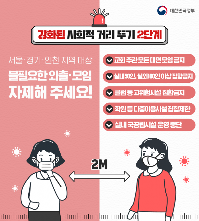 사회적 거리두기 2단계 격상에 따른 봉사활동 중단 안내 페이지 정보 작성자 박성호 작성일 20-08-20 13:50 조회 18,070회 댓글 0건 본문 최근 수도권을 중심으로 퍼진 코로나19 바이러스로 인해 사회적 거리두기가 2단계로 강화되었습니다.평화로운집은 시군구의 권고사항에 의해 2020년 3월부터 현재까지 모든 봉사활동을 중단하였습니다. 항상 평화로운집을 아껴주시고 사랑해 주시는 모든 봉사자님께 감사드립니다.사회적 거리두기와 단계별 국민 행동수칙, 개인별 방역까지 꼭! 지켜 주시기를 바라며다시 만나는 날까지 건강하시도록 항상 기도하겠습니다.감사합니다. 이전글 다음글 목록